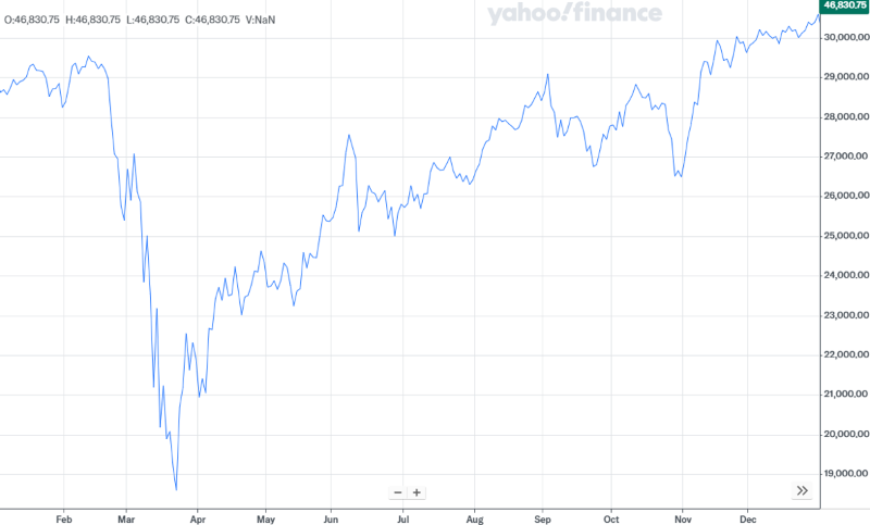 Yahoo! Finance(ダウ平均 2020年1月~12月の推移)